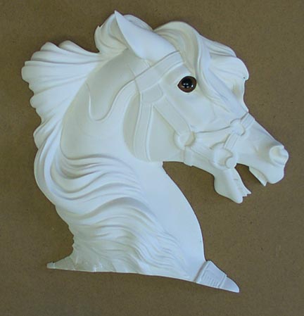Primed Resin Carousel Horse Head - 12 inches by 12 inches wall hanging. Cast from an original carving. Primed and ready for painting. |
