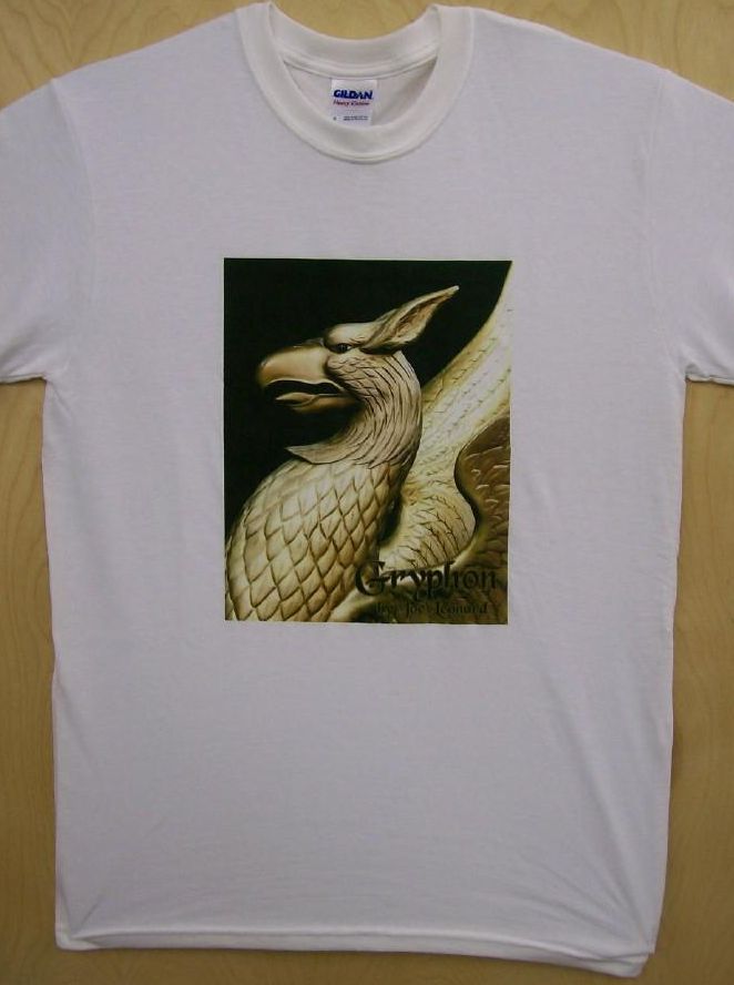 Bronze Griffin T-Shirt - Exclusive Joe Leonard T-Shirt Series featuring the Bronze Griffin proudly displayed on the front. Each T-Shirt is 100% Cotton. Please state color (black or white) and size (S, M, L, XL) when ordering. |
