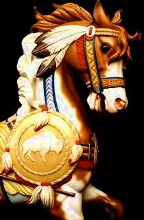 This 1/2 scale Indian Pony Carousel Horse is 36" long by 33" tall. It is carved in basswood and painted with enamels. This is a numbered limited edition.