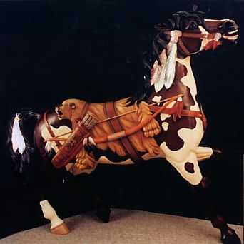 This Indian Paint Horse was carved for a collector in Aspen, Colorado. It's approximately 5'8" tall, is carved in basswood and painted with enamels.