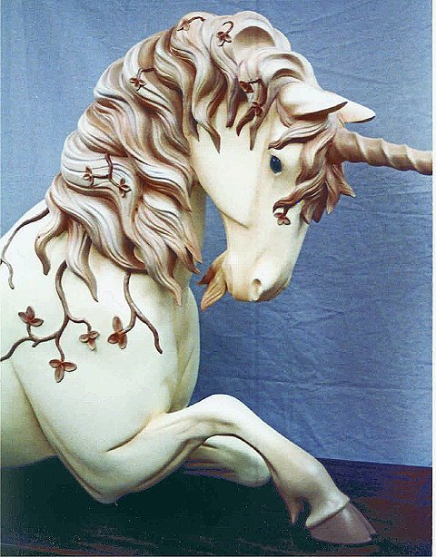 This Unicorn was custom designed and carved for a collector in New Jersey. This piece is approximately 5 1/2 feet long and is carved in basswood.